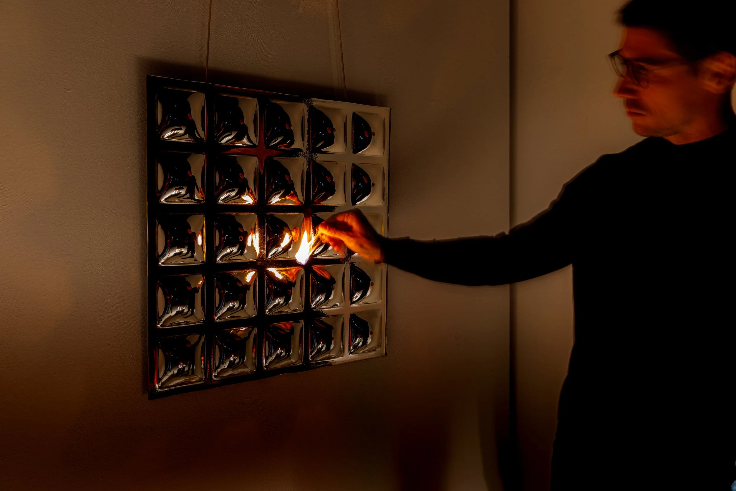 This process gives each piece a unique topography. The gentle extrusions that emerge from the bending of the glass disrupt the uniformity of reflection, creating areas where the image stretches, compresses, or shifts. Reflection becomes fluid and unstable—no longer a fixed representation, but something that evolves with movement and perspective.